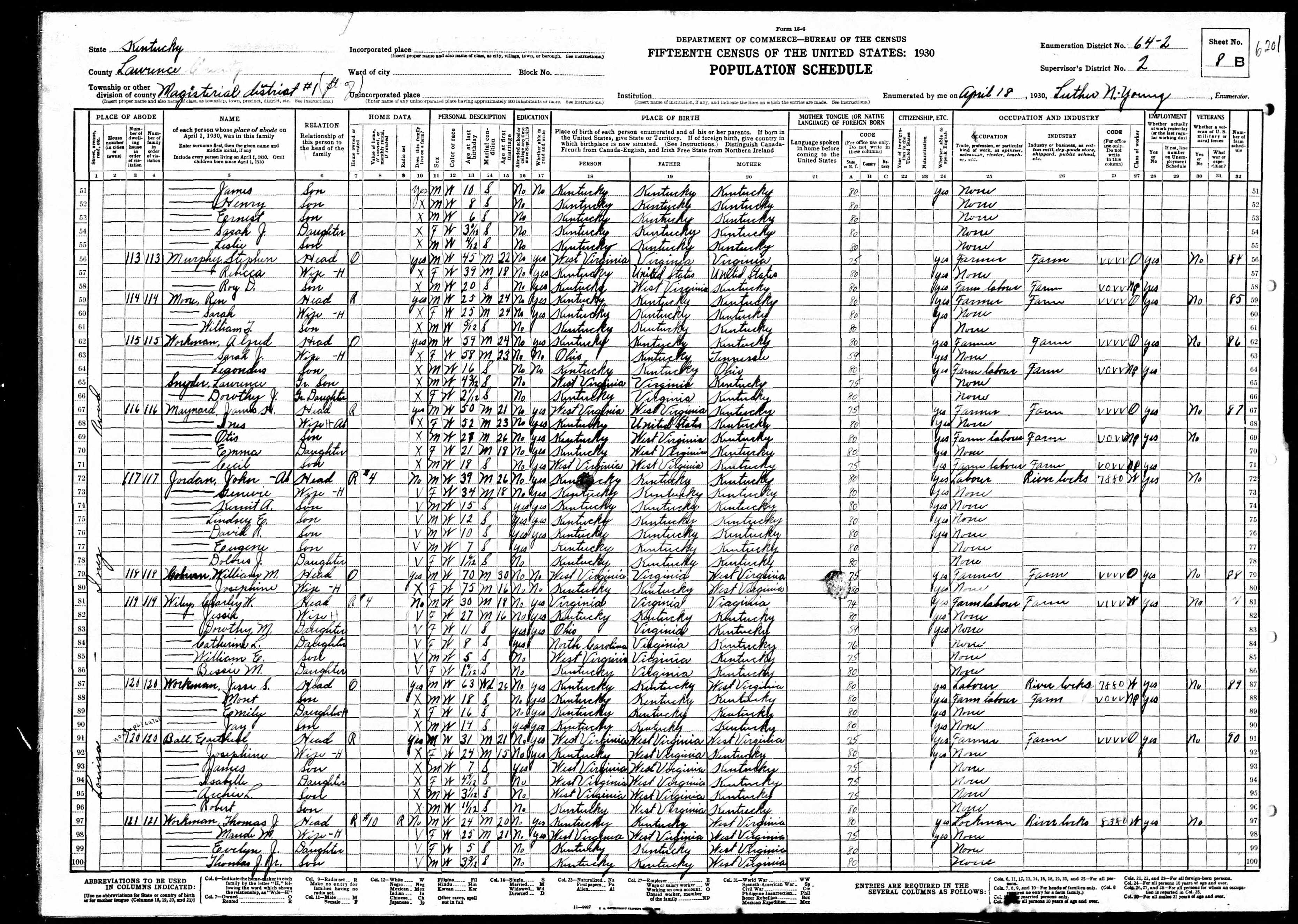 US-Federal-Census_1930_USA.Kentucky.Lawrence.Lousia_MAYNARD.James-H, April 1, 1930