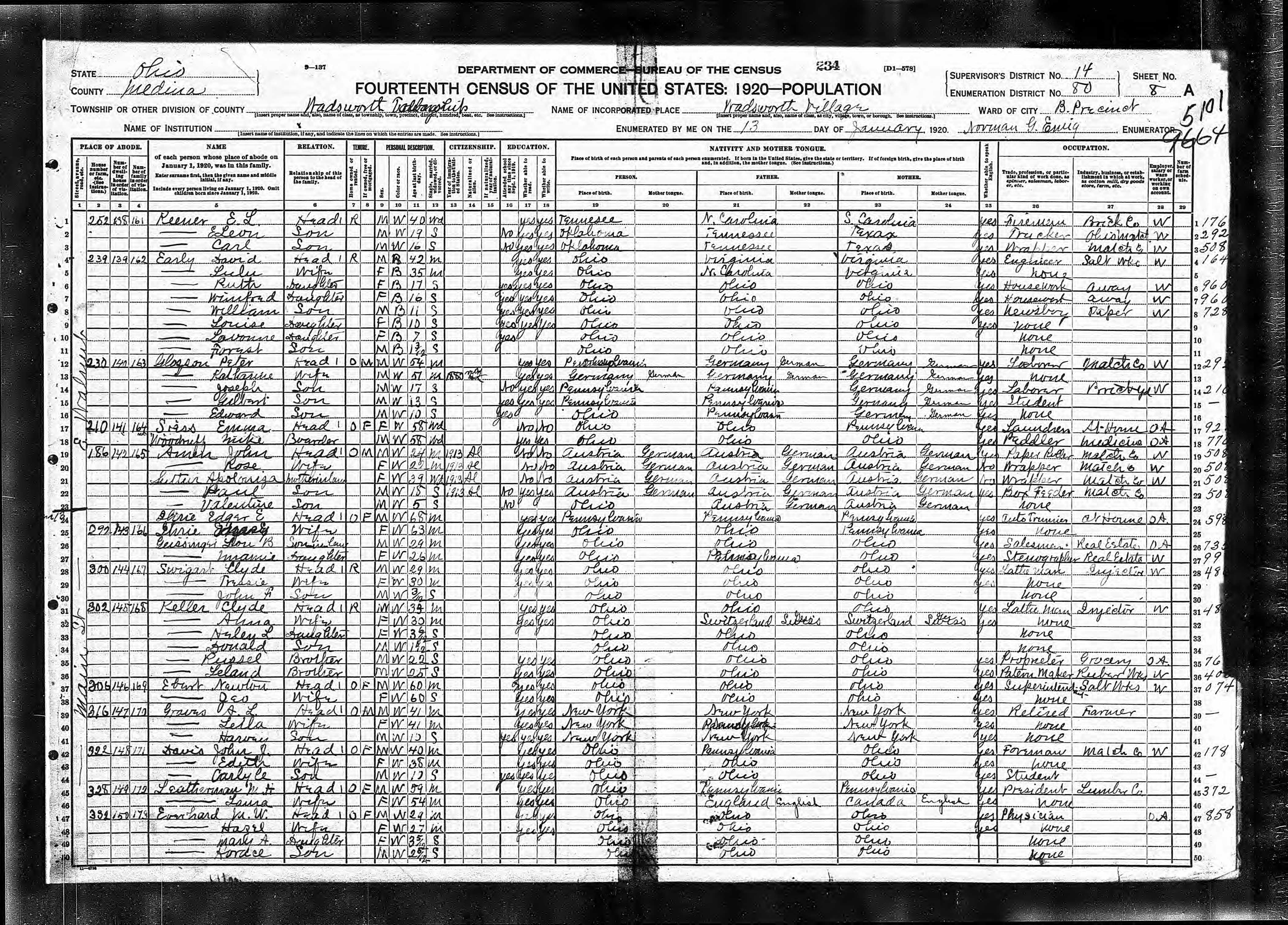 US-Federal-Census_1920_USA.Ohio.Medina.Wadsworth_KEENER.E-L 2, January 1, 1920