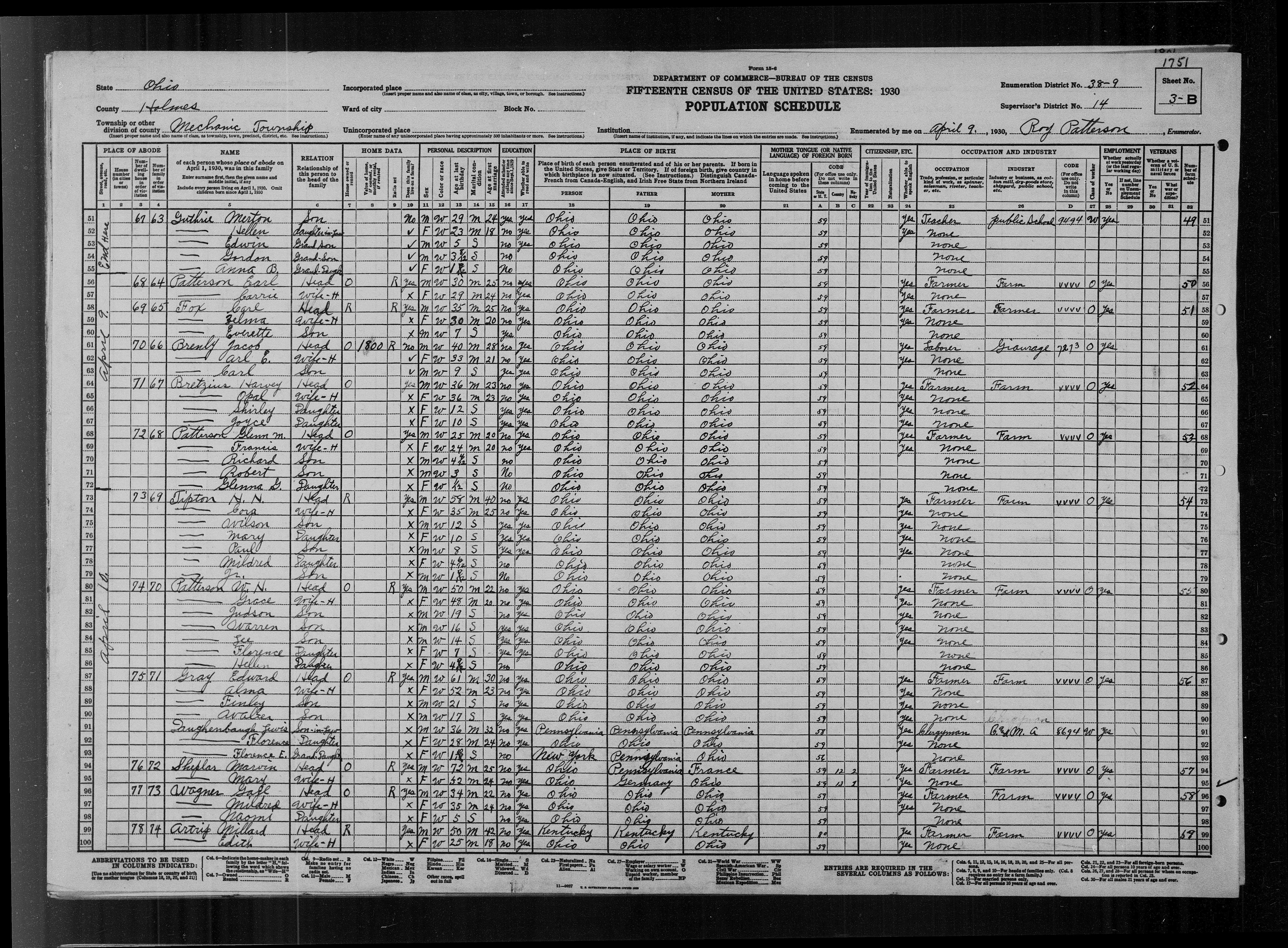 William Henry PattersonOccupationApr 10, 1965Ret. farmer, Holmes, Ohio, United States [S51]